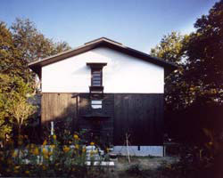 街角の20坪の土地で建坪10坪の3層住宅である。半地階部分をコンクリートでつくりその上に木造2階建を乗せた。法規規制でがんじがらめの中で内部は小さな子供達が自由に動き廻れるよう如何に木造の架構を活かし、自由で闊達な空間を作るかに腐心した。